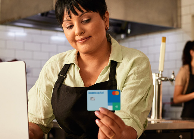 ♢ Subject to approval of a Coast Capital Business Credit Card by Coast Capital’s credit card provider Collabria Financial Services inc., at its sole discretion. Up to $25 one-time rebate on the first year annual fee for eligible Coast Capital Business Credit Cards. Eligible Credit cards include the Low Rate Business Mastercard® and World Elite® Business Mastercard .The fee rebate shall be applied directly to eligible Coast Capital Business Essential Chequing Account in the year the eligible Coast Capital Business credit card account, or Coast Capital Business Essential Chequing Account, or both are opened. Limit of one fee rebate per Coast Capital Business Essential Chequing Account. The eligible credit card account and Business Essential Chequing Account must be in good standing at the time the fee rebate is applied. Coast Capital may change, revoke, or end this offer at any time in its sole discretion and without further notice.